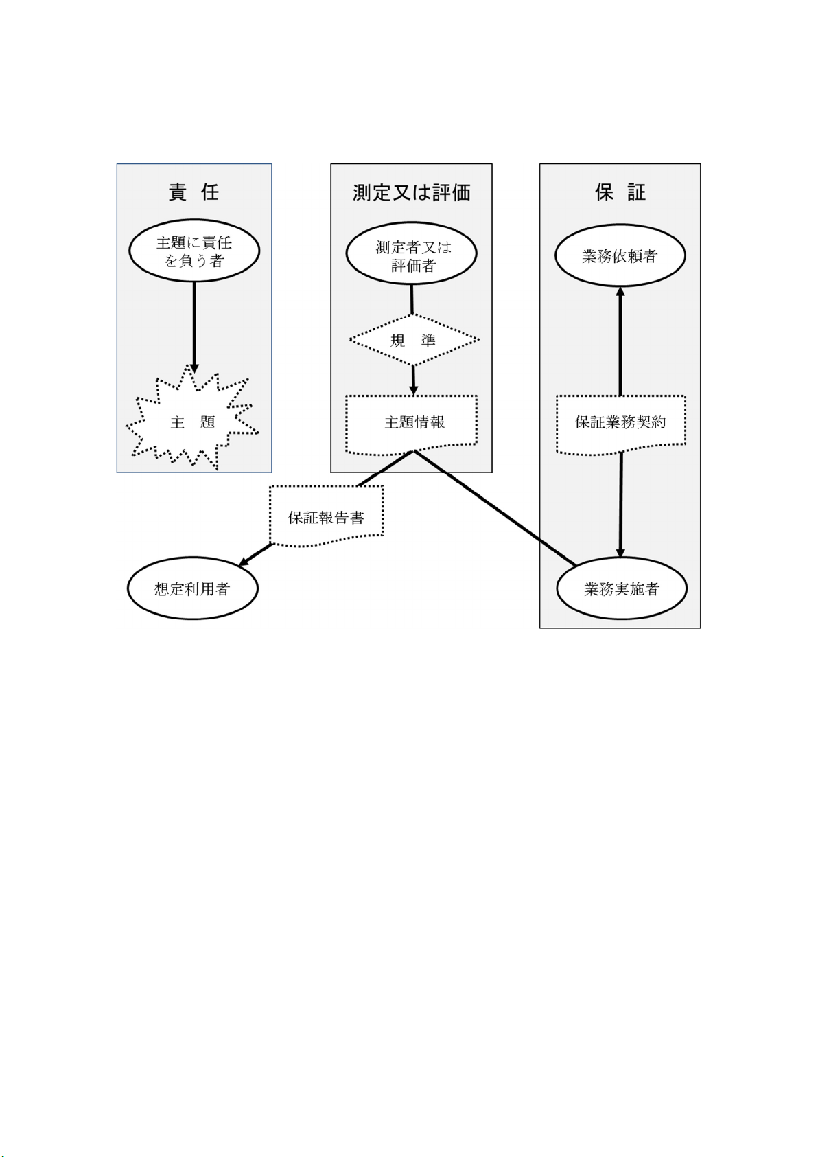 証業務との相違を説明している。また、例えば、保証業務の主題、要求された適合