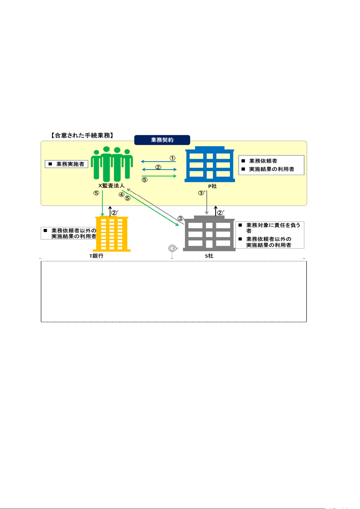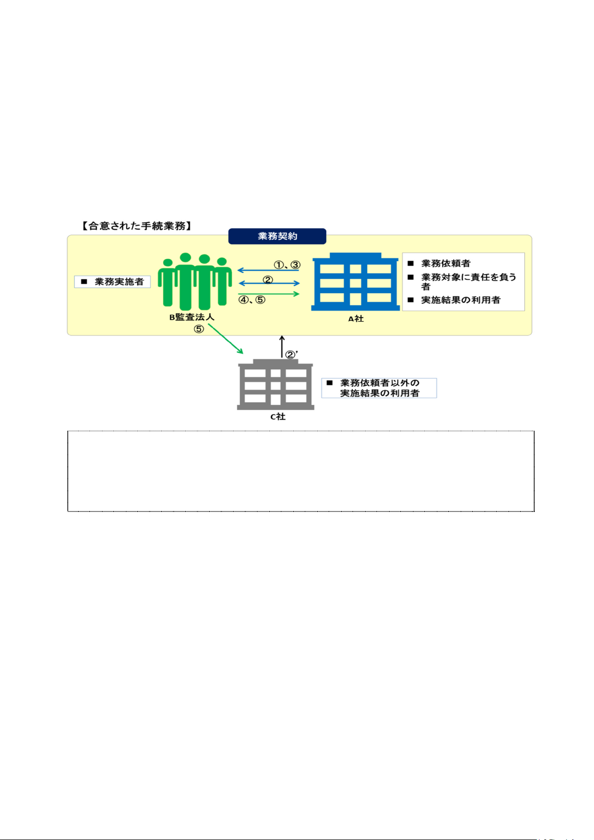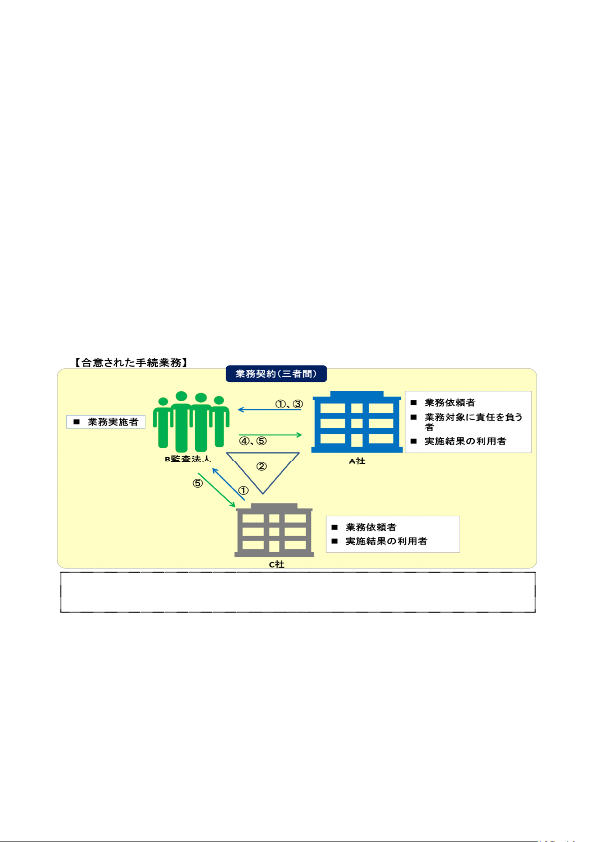 ・ 合意された手続業務は、実施される手続が業務の目的に照らして適切であると業務依頼者