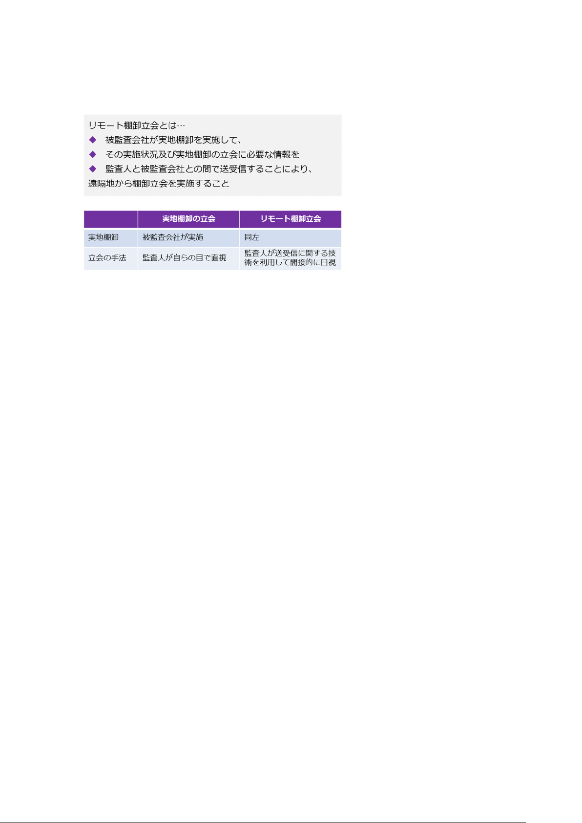 ・ リモート棚卸立会を行う場合、監査人は、被監査会社から受信した実地棚卸の状